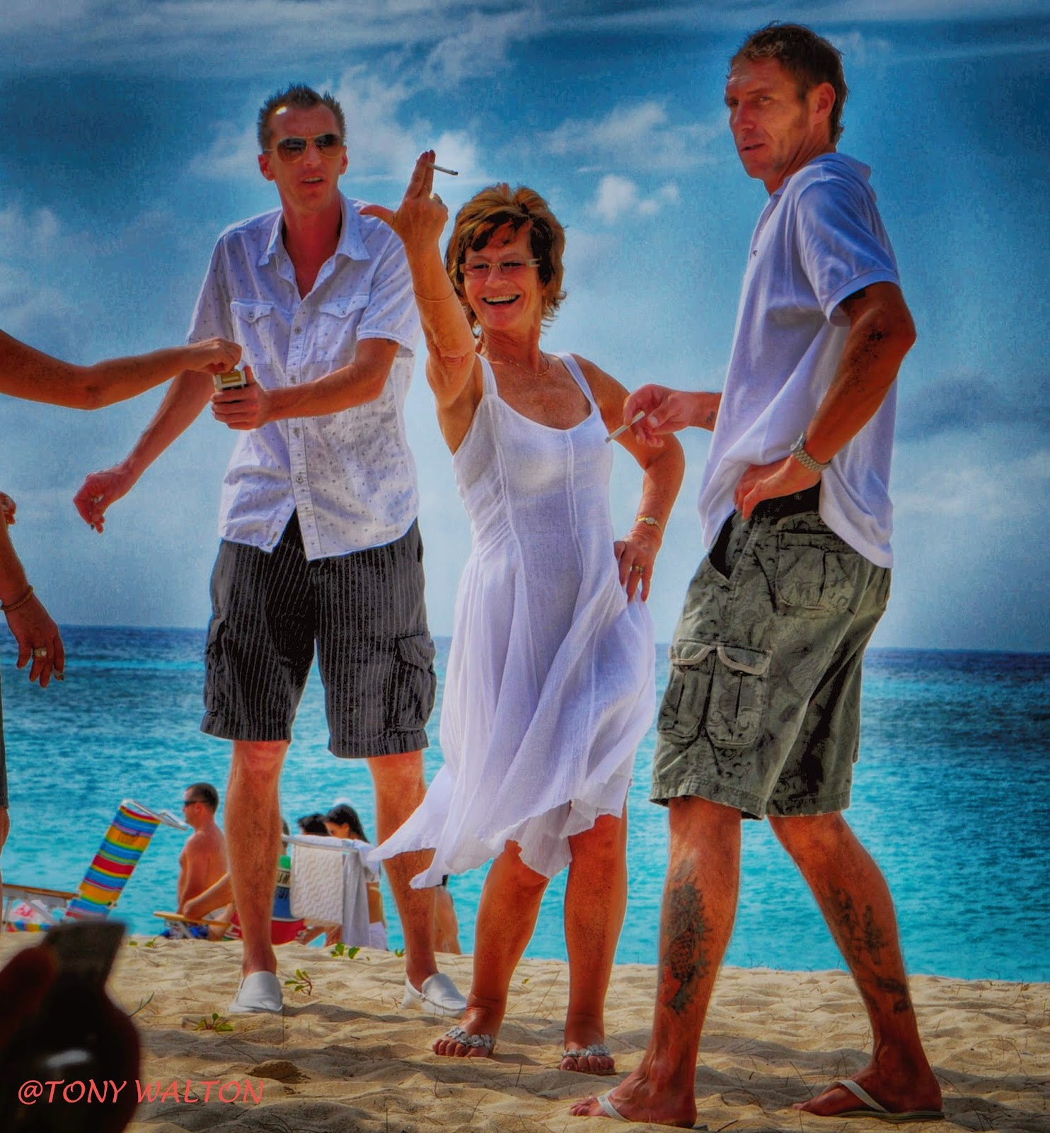 Lady in white dress reacting to complaints about their smoking from people having brunch at 1:33pm at the westin hotel sunday brunch, grand cayman, cayman islands